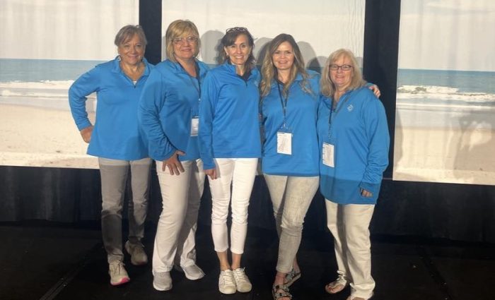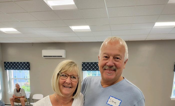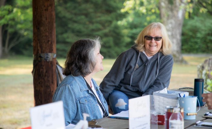 • Two volunteers smiling.